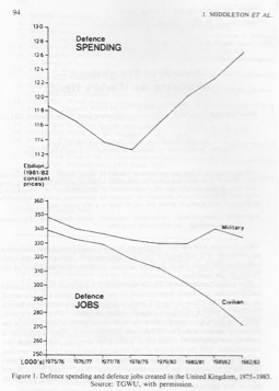 The UN report on Disarmament and Development (Thorsson report) spelled out the adverse impacts of the military-dependent economies then in a period of stagflation - high unemployment but spiraling inflation. Military industries, although major employers, do not employ as many people for a given investment as do health, education, transport, and environmental activities. Military industries compete with other manufacturers for material resources and human ingenuity. (5)