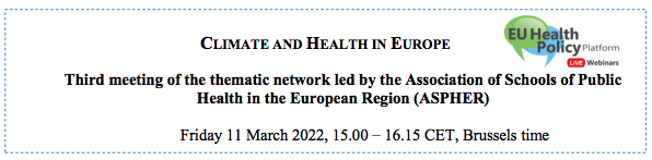 Since receiving your input for key themes and messages, ASPHER has been working towards a draft joint statement conveying a one-voice view on climate action through education and training of public health professionals. During the third webinar of this thematic network, the floor will be open to your comments on the draft statement. This draft will be shared on the EU Health Policy Platform a few days in advance of the meeting.