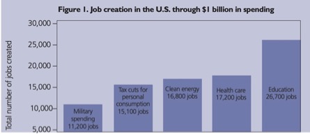 The UN report on Disarmament and Development (Thorsson report) spelled out the adverse impacts of the military-dependent economies then in a period of stagflation - high unemployment but spiraling inflation. Military industries, although major employers, do not employ as many people for a given investment as do health, education, transport, and environmental activities. Military industries compete with other manufacturers for material resources and human ingenuity. (5)