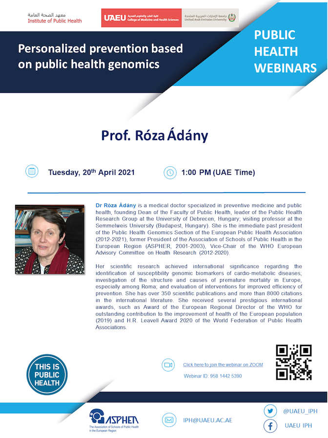 Webinar with Roza Adany: Personalized prevention based on public health genomics. 20 April, 11:00 CEST