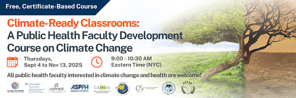 This comprehensive 11-week course, led by experts from around the world, is designed to equip public health faculty with the knowledge, skills, and tools necessary to integrate climate change into public health degree education and to train the next generation of professionals who will lead climate-informed health interventions.