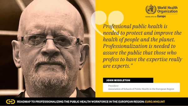 The WHO European Region has made great progress in reducing the burden of noncommunicable diseases but gains still need to be accelerated. COVID-19 and climate change have added new challenges, revealing continued vulnerabilities and inequalities and demonstrating the continuing threat from infectious disease and environmental degradation. Building the capacity of the public health workforce is key to achieving better health for populations and for the planet, however, few countries in the WHO European Region have sought to build the capacity of the public health workforce through professionalization.